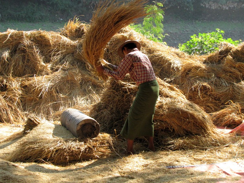 Thrashing rice